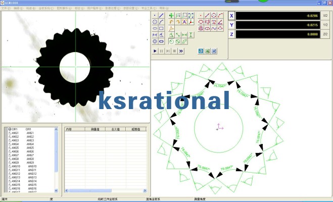 功能元素测量与预制:点、线、圆、弧、槽、椭圆、矩形、圆环、云线、距离、角度、焦面 元素构造:中心点、交点、中点、线、圆、角度、距离、云线等的构造。圆形处理:坐标平移动、工件摆正、坐标系重置、圆形缩放、圆形平移动、圆形选中及删除控制等多种处理,测量更方便快捷,提高测量效率