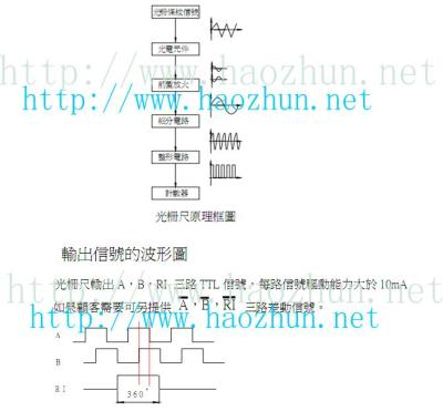 光栅尺为透射式幅值光栅,其原理为主,副光栅相对位移时,产生莫耳条纹变化,此变化将由精密光电转换器件,转换为电讯号,然后经讯号处理电路处理后,输出相应位移量的数字讯号。。
