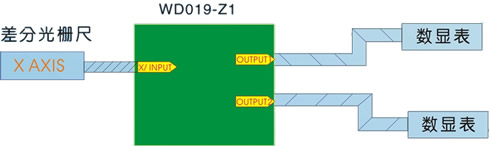 产品用途 WD019-Z1和WD019-Z2为光栅尺输出信号1to2转接板。主要功能是把从光栅尺输出的信号转接为两组互不干扰的信号,其两组输出信号为单端、差分信号可任意选接。这样可使光栅尺输出的一组单端或差分信号龚两组数显计数使用,方便对两组数显系统计数数据进行对比。WD019-Z1为差分光栅尺输入,WD019-Z2为单端光栅尺输入。 电气原理图 接脚丝印图 应用范围 单根光栅尺需要供两个独立技术系统使用的场合 安装尺寸 可提供一进转数显表和PLC 1:2;