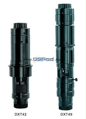 型号 DXT42 变倍比 7:1 物镜变倍范围 0.2X-1.4X 工作距离 90mm 调焦范围 47mm C型CCD接头,距离成像靶面 17.53mm 可配1/2" 1/3" 2/3" CCD 摄像机 1/3"CCD 摄像机,标准配置时物方视场直径范围:30-43mm